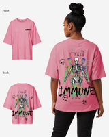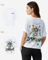 Empower your look with the G West Oversized Immune Tee for Women, a graphic tee that combines fashion with resilience. The bold front print delivers a strong message of strength and immunity—perfect for those who wear their mindset with pride. The soft cotton construction ensures all-day comfort, while the oversized fit gives it a casual, confident edge. Wear it solo or layered for a standout streetwear look.