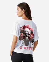 Indulge in a fusion of sweet and edgy with the G West Ice Cream Skull Tee. This oversized tee features a skull design dripping with ice cream, symbolizing the perfect balance of danger and delight. The soft cotton fabric ensures comfort, while the bold graphic makes a statement. Ideal for women who embrace a fun, fearless style, this tee pairs effortlessly with denim or skirts. Show off your playful side while making a bold statement with this unique, one-of-a-kind tee.