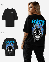 Brighten your everyday look with the G West Oversized Aqua Smile Tee for Women. This tee features a vibrant aqua color and a bold smiley face graphic that brings instant positivity to your outfit. Crafted from premium, ultra-soft cotton, it offers breathable comfort perfect for all-day wear. The oversized fit gives a relaxed, stylish edge, ideal for pairing with leggings, denim, or biker shorts. Whether you’re chilling at home or heading out with friends, this tee delivers effortless cool with a playful twist.