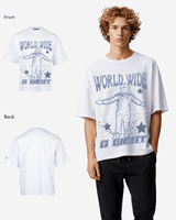 Make a bold statement with the G WEST Oversize Worldwide Star T-Shirt. This standout piece is designed to turn heads with its striking star graphic that symbolizes global style and influence. The oversized fit provides a relaxed, contemporary look, perfect for layering or wearing on its own. Crafted from soft, high-quality cotton, this tee ensures maximum comfort and durability. Ideal for those who want to blend fashion with a touch of flair, this shirt is your go-to for making a global impression.