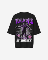 The G West Oversized World Wide Star Tee is perfect for the woman who wants to make a global statement. Featuring a bold, star-studded graphic, this oversized tee celebrates universal style and confidence. Crafted from soft, breathable cotton, it ensures comfort all day while keeping you on top of the fashion game. The relaxed fit provides a casual yet trendy look, making it versatile enough for everything from laid-back weekends to nights out with friends. Show off your international flair and stand out with a tee that brings the stars right to you.